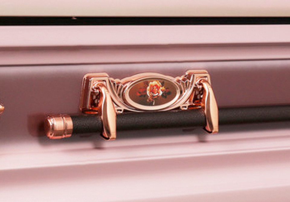 Metal Casket:Mother’ Casket Pink Finish with Pink Velvet Interior