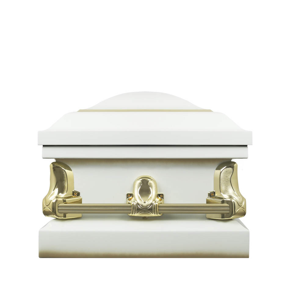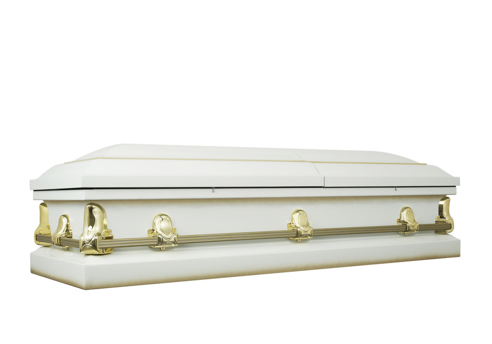 Metal Casket:Spartan White And Gold Casket with White Crepe Interior